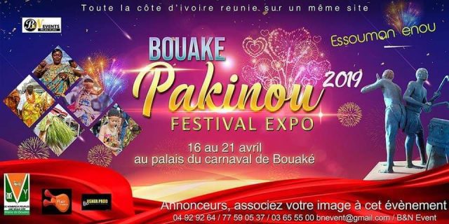 Bouake Pakinou Festival démarrera avec une foire expo vente à partir du 16 avril dans la cour du palais du carnaval et le volet spectacles et culturel à partir du 19 pour prendre fin le 21 avril.